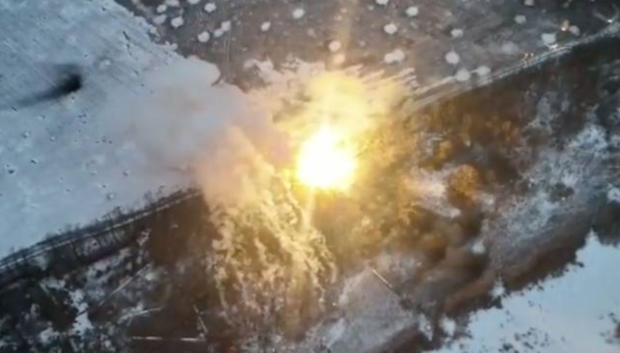 자국산 RGT-27 열압력 수류탄을 매단 드론은 전차 머리 위로 접근해 열린 해치 틈 사이로 수류탄을 정밀 투하했습니다.